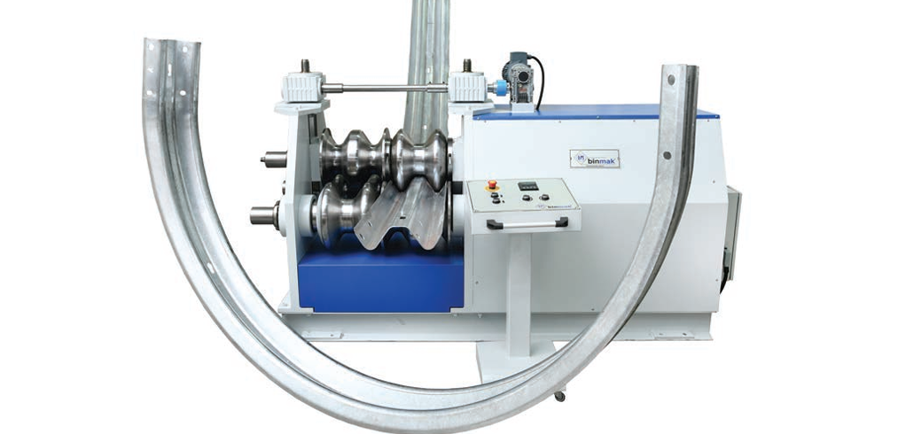 Upper roll provides the desired diameter adjustment, polyurethane coated lower roll provides pre-bending.